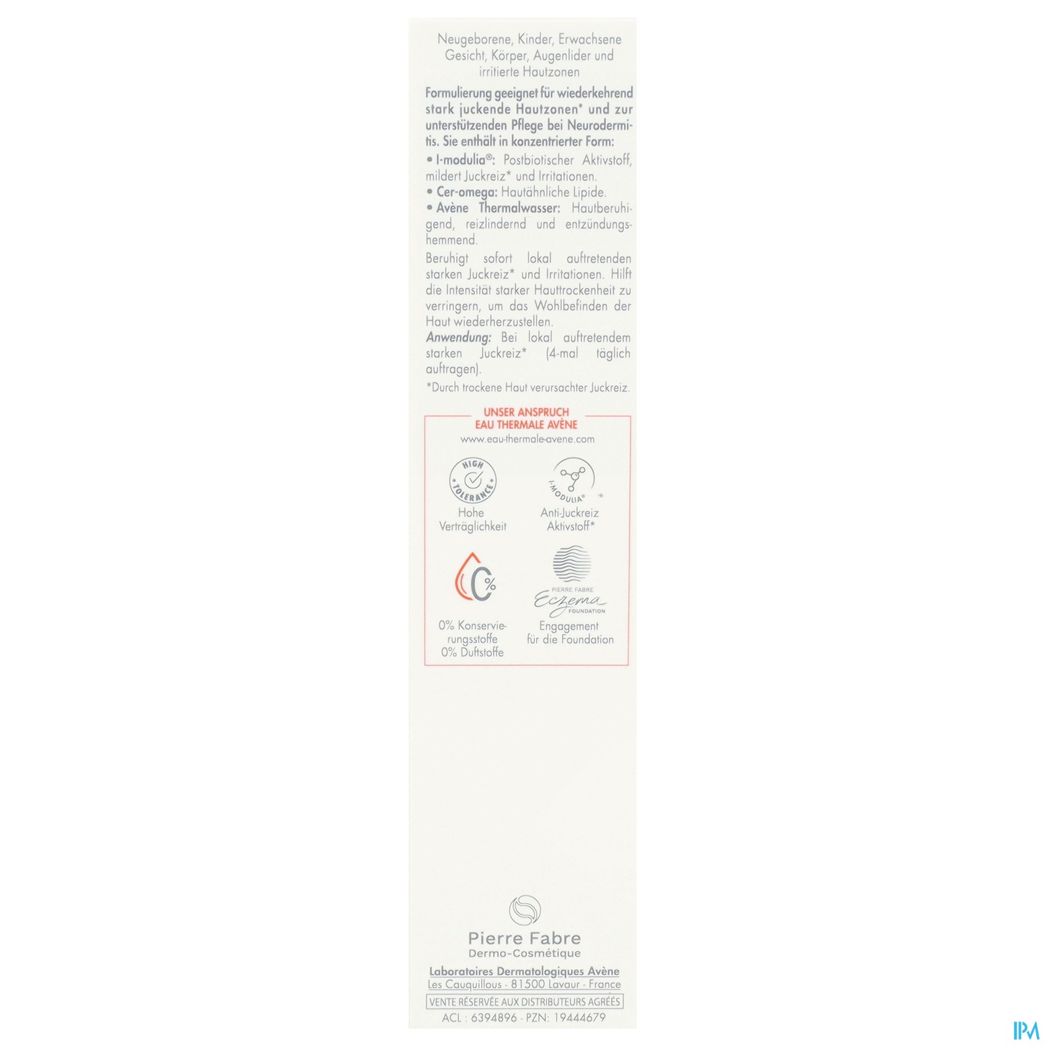 • BERUHIGEND dank Avène Thermalwasser und I-modulia®. EMOLLIENT
